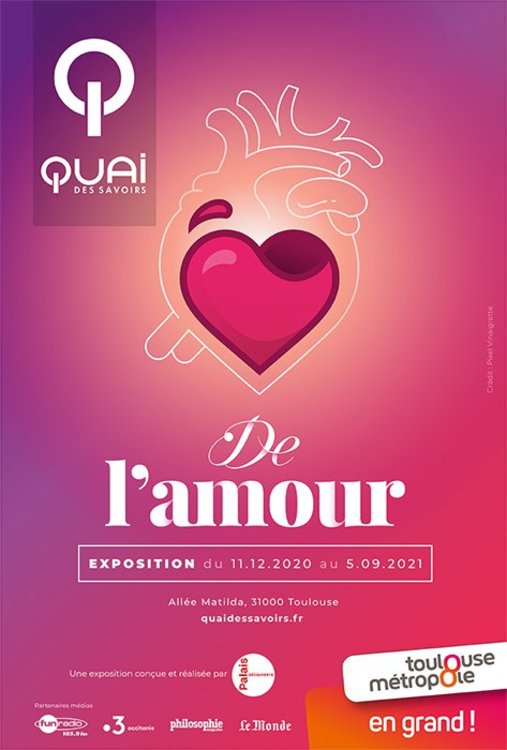 Du 15 décembre 2020 au 6 septembre 2021, le Quai des Savoirs questionnera à travers sa nouvelle exposition « De l’amour » ce mystérieux sentiment en donnant la parole aux artistes et aux scientifiques pour embrasser les territoires amoureux.