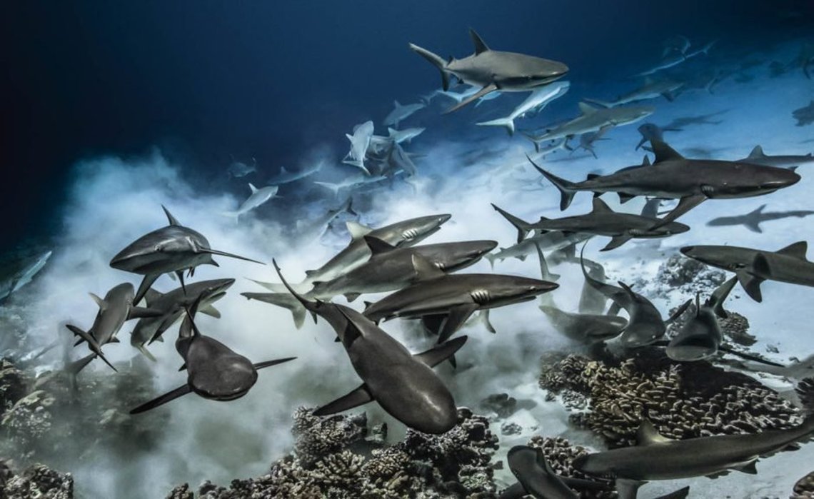 Parti observer un rassemblement de mérous en 2014 dans l'atoll polynésien de Fakarava, Laurent Ballesta y avait découvert un groupe de plus de 700 requins gris. Comment expliquer cette densité inédite ? Durant trois années de préparation, avec les autres plongeurs de l'équipe scientifique internationale qu'il pilote, il a apprivoisé sa peur en abandonnant les réflexes défensifs qui provoquent l'agressivité des requins, dans le but de se glisser au coeur du groupe pour l'étudier et la filmer de l'intérieur. Squales appareillés de puces électroniques, antennes réceptrices, hydrophones, arche de 32 caméras synchronisées : tout un arsenal technologique a été mobilisé pour le projet.