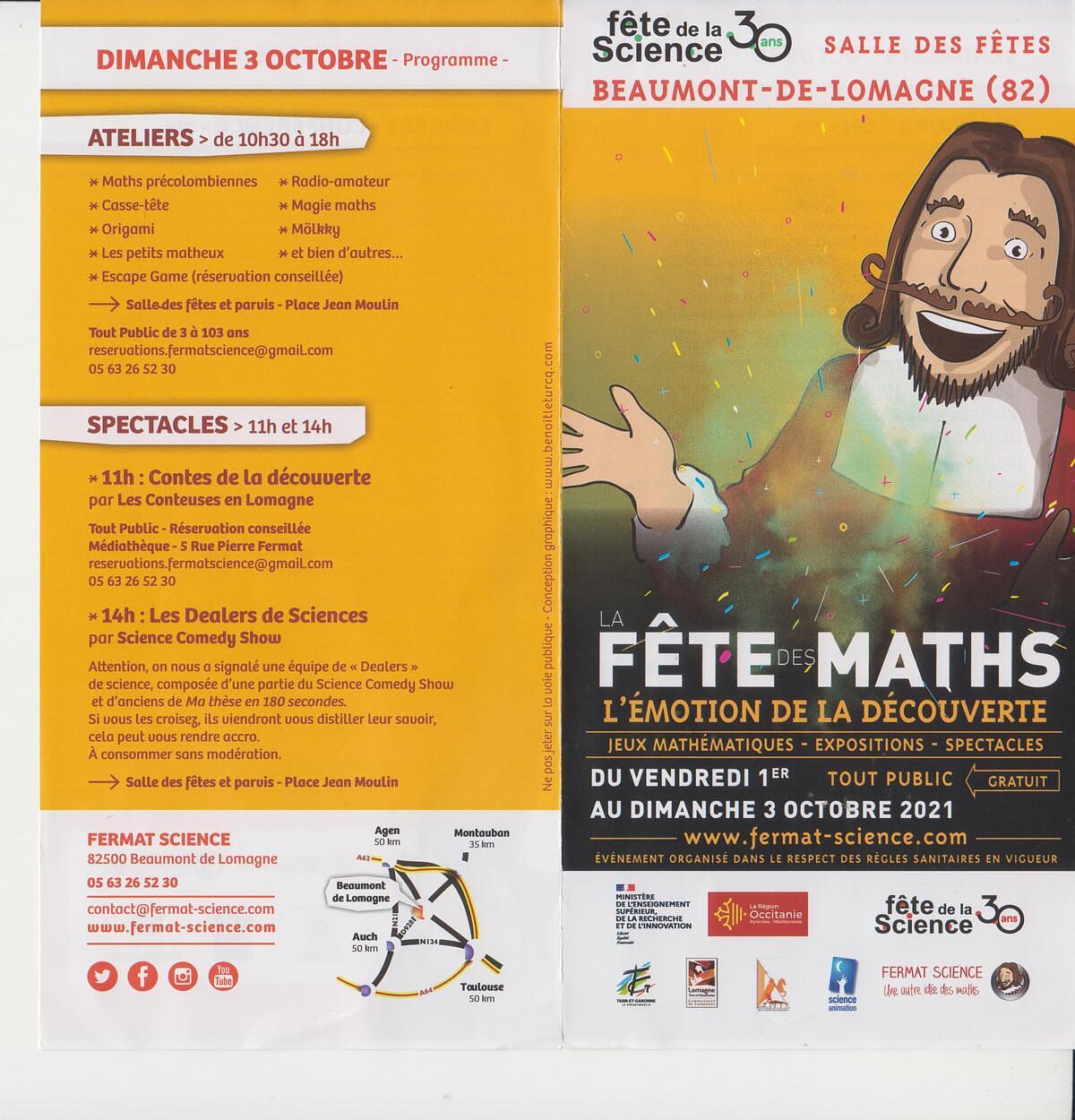 Quant au dimanche 3 octobre, les maths tiendront la vedette à Beaumont lors d’une grande fête populaire ouverte à tous !
