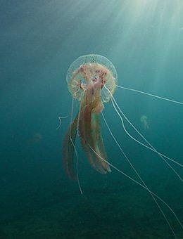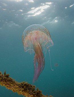 Dans la première quinzaine de janvier, le BOSS a observé dans la baie de Banyuls un important bloom de Pelagia Noctiluca dont un spécimen a été pris en photo par le plongeur du service Bruno Hesse. Ces blooms hivernaux sont fréquents pour cette espèce particulièrement urticante bien connue des baigneurs méditerranéens.