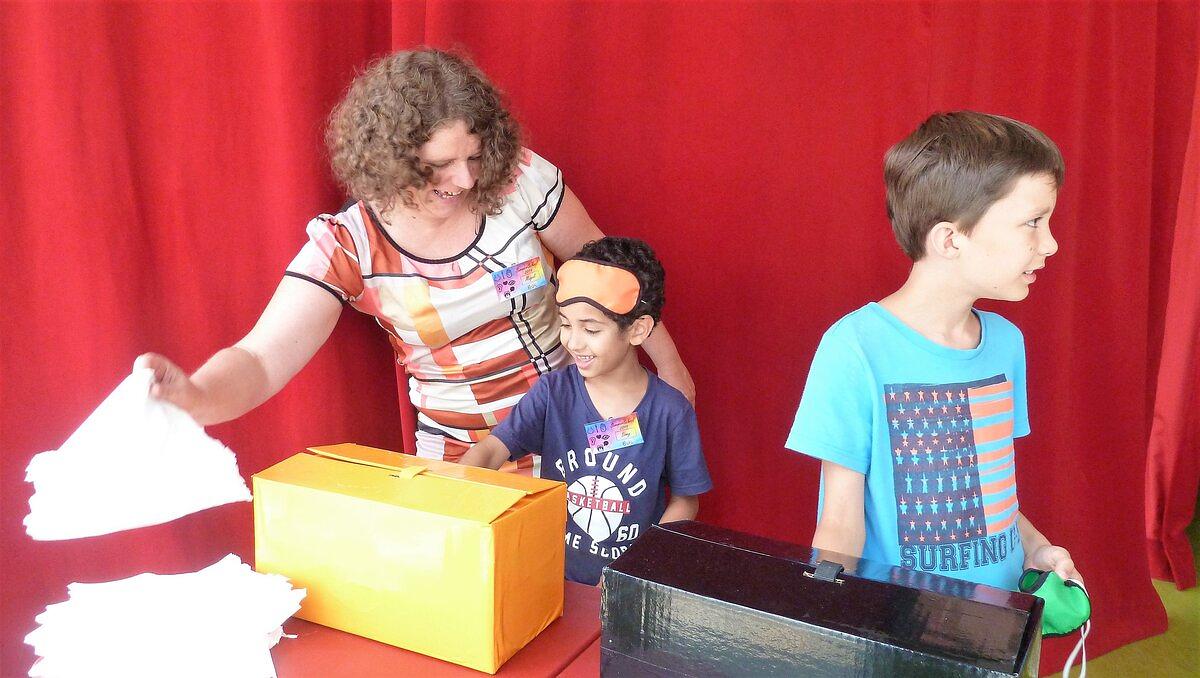 Ils ont commencé avec les « boîtes à toucher » ! Quoi de mieux pour comprendre la peur que de l’expérimenter soi-même en mettant sa main tremblotante dans une boite mystérieuse, alors qu’une photo d’araignée est collée sur celle-ci ! Fou-rires garantis quand les objets découverts ne sont que des peluches en laine, en tissus ou encore en Slim.