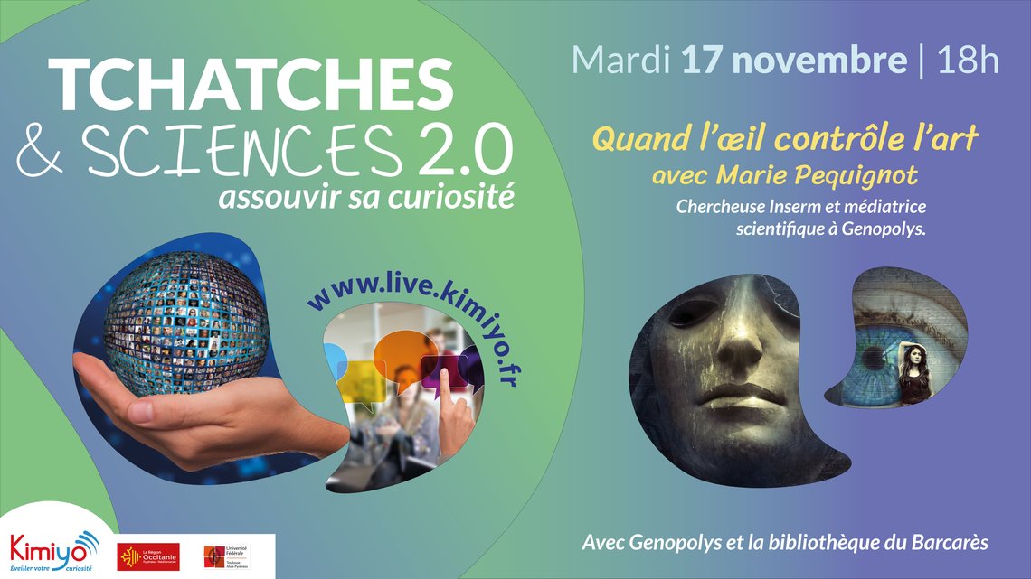 À l'occasion de nos tchatches 2.0, nous avons pu discuter avec Marie Pequignot, chercheuse à l'Inserm, spécialiste des maladies dégénératives de la vue, passionnée d'art et médiatrice scientifique à Genopolys. Par son expertise, elle a pu nous expliquer la structure de l'œil, son fonctionnement avant d'aborder des questions plutôt liées à l'art. Qu'est-ce que l'art ? Comment les artistes arrivent à créer des effets de profondeur sur de la 2D ? Des effets d'ombres ? De mouvements ? Vous pouvez retrouver la réponse à toutes ces questions et bien d'autres sur le podcast disponible ici :