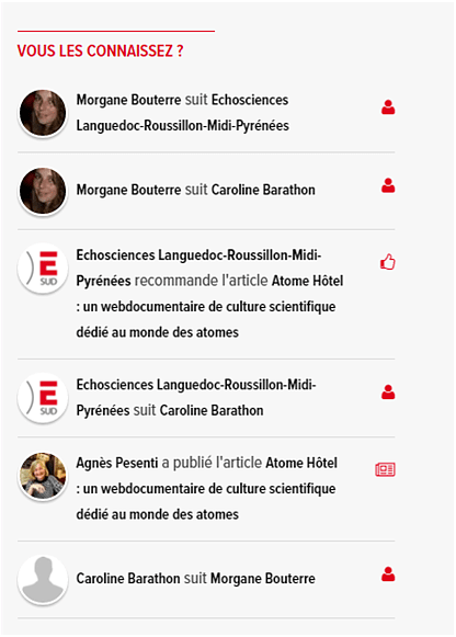 Quelques minutes devant vous pour naviguer sur Echosciences ? Ne manquez pas les dernières actions des membres dans le “Vous les connaissez ?” en page d’accueil.