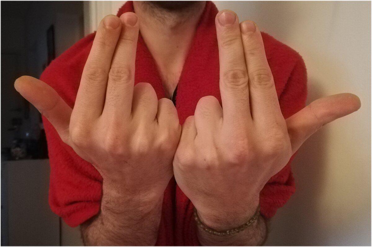 Par ce geste, il affiche non seulement son nom de scène, mais également, sans le savoir, le nombre 903 pour un informaticien qui s'amuserait à compter avec ses doigts. Si l'on regarde de plus près, les doigts levés sont ceux ayant les valeurs : 512 + 256 + 128 + 4 + 2 + 1 = 903. Aux vues des doigts levés et baissés, nous pouvons en conclure que la correspondance en binaire du nombre 903 est 1110000111. Qui a dit que ce monsieur détruisait la culture ? Grâce à lui vous savez passer d'un système à l'autre uniquement avec vos doigts. Merci Jul. (Oups)