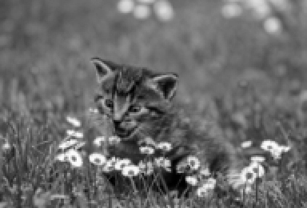 Notre succession de missions touche à sa fin. Grâce à ces trois étapes nos ex-futurs experts informaticiens ont pu découvrir le principe du fonctionnement d'un programme, apprendre la langue binaire des ordinateurs et s'initier au fonctionnement des pixels (en noir et blanc). Et grâce à cela, l'affichage de notre magnifique chaton sur un écran n'a plus de secret pour eux. Enfin, avec ce qu'ils ont appris durant ces missions, le chaton s'afficherait plutôt comme ca (et encore pas exactement mais si je ne le met qu'en noir et blanc, on ne le voit plus, ce serait dommage!)