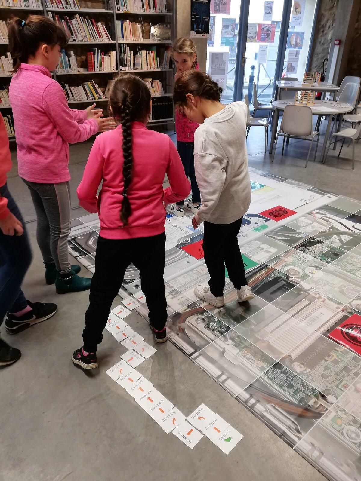 Ils ont en leur possession 3 cartes action différentes : "Avance", "Droite" et "Gauche". Tel le premier Mario à la recherche de sa princesse, ils vont devoir réaliser le parcours sur ce tapis en utilisant le moins de cartes possibles et en évitant les cartons rouges (erreurs, bugs, débranchement...). Attention une contrainte leur est imposée : ils doivent préparer le programme complet, sur table, avant de pouvoir le tester, d'un coup, sur le tapis une fois terminé.