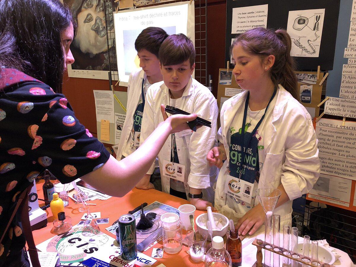 Nous avons tout au long de cette enquête réalisé plusieurs tests comme des tests d’empreintes. Nous avons également cherché à découvrir si des traces de sang étaient présentes. Pour cela, il a fallu verser de l’eau oxygénée. Cette eau a directement réagi avec l’hémoglobine en constituant de la mousse. Nous avons également appris à extraire de l’ADN !