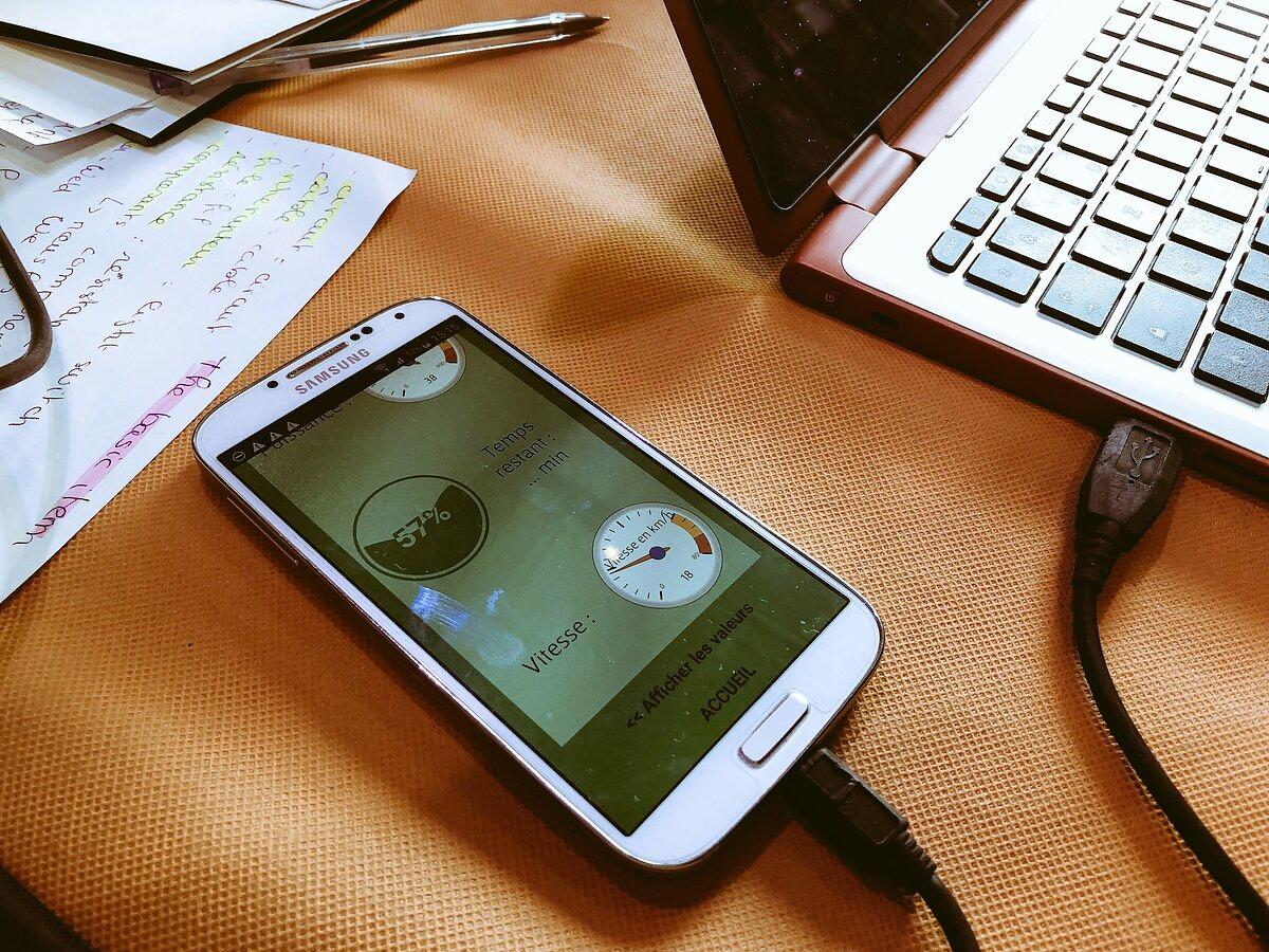 En effet, nous avons développé une application mais elle n’est pas encore terminée. Celle-ci sert à fournir des informations diverses comme le pourcentage de charge, mais nous souhaitons récupérer des informations supplémentaires comme la vitesse et la puissance. Des solutions sont recherchées pour aller plus loin, nous allons donc continuer à développer cette application.
