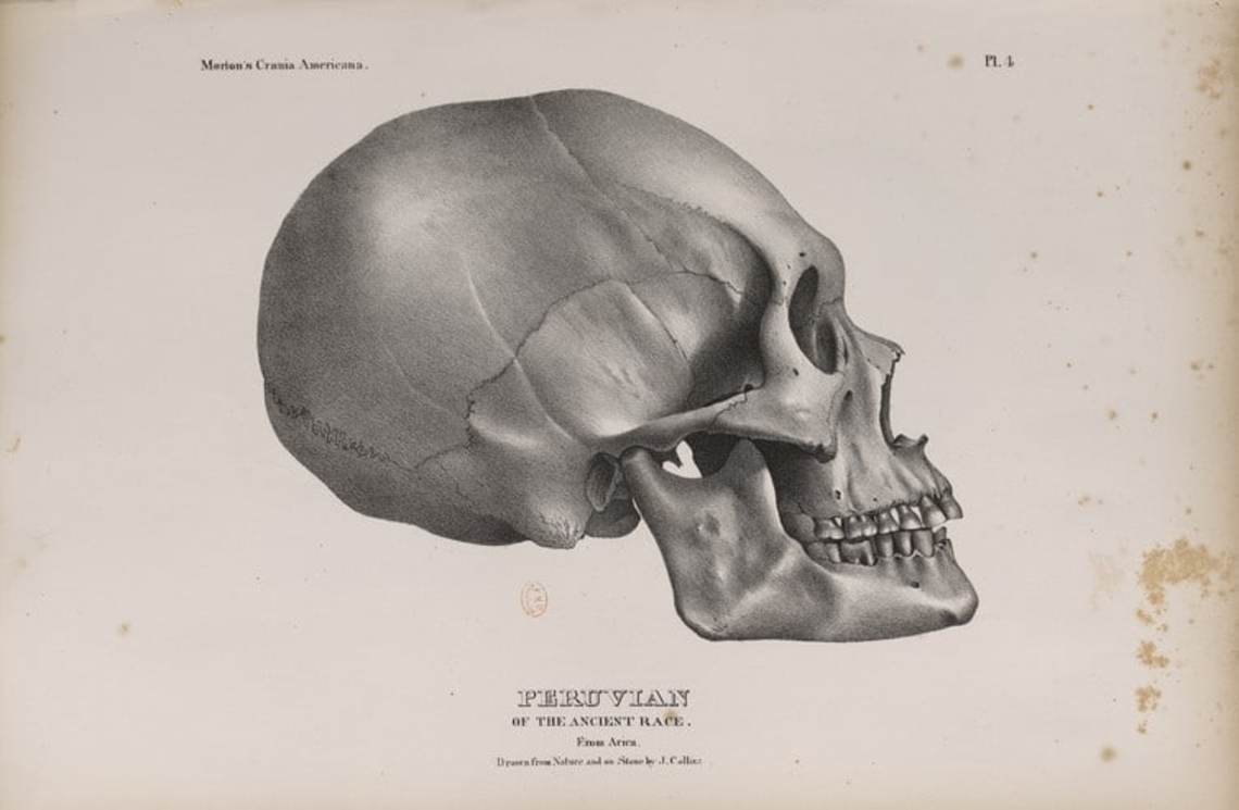 Lithographie de John Collins (1839) d’après « Crania Americana » de Samuel Norton. Bibliothèque de Médecine de Paris