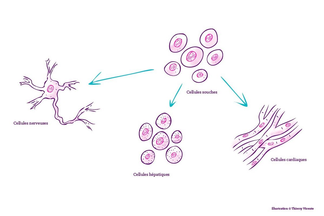 Il en existe deux types : les cellules souches multipotentes, qui peuvent se différencier en un nombre limité de types cellulaires, et les cellules souches pluripotentes, qui peuvent donner toutes les cellules de l’organisme (lire encadré). Comment ? « Grâce à un cocktail de molécules qui induit leur différenciation en un tissu spécifique », explique le directeur de l’IRMB. Un cocktail « foie » pour obtenir des cellules hépatiques, un cocktail « cœur » pour obtenir des cardiomyocites, au choix. Avantage de cette technique : on peut prélever les cellules du patient lui-même et les lui réinjecter après les avoir différenciées, sans risque que son système immunitaire ne rejette le greffon.