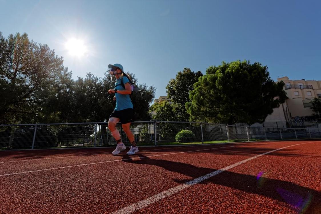 Photo : Les chercheurs mesurent la consommation de dioxygène des coureurs pour évaluer leur performance énergétique - (c) Loïc Damm