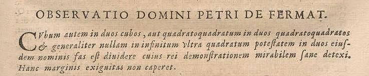 Ces quelques lignes, qui ont dès lors aiguisé l'appétit des mathématiciens les plus fameux, ont valu à Pierre de Fermat la Une des journaux du monde entier lorsque l'énigme a finalement été résolue dans les années 1990.