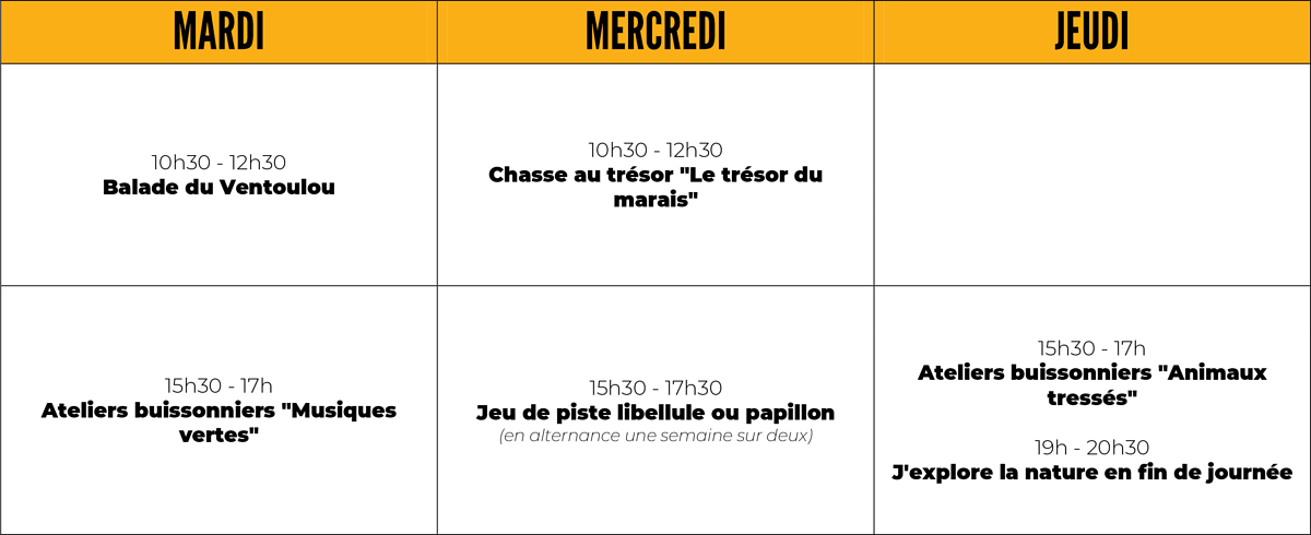 • La Balade du Ventoulou : 6km de marche jusqu'au Marais au cours desquels vous en apprendrez plus sur les paysages, l'agriculture, la flore et bien plus !