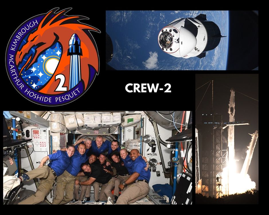 Un nouvel équipage de 4 astronautes, Crew-2 est arrivé à la Station Spatiale Internationale avec le vaisseau Crew Dragon : 2 Américains de la NASA, 1 astronaute japonais de la JAXA et un astronaute français de l'Agence Spatiale Européenne, Thomas Pesquet.