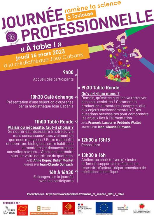 Cette journée a pour thématique “A table”. Elle est organisée dans le cadre de la 23e édition du Festival Scientilivre.
