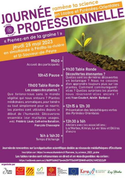 Dans le cadre du projet Sciences en médiathèque, Délires d’encre organise une journée professionnelle en visioconférence sur la thématique “Prenez-en de la graine” le jeudi 25 mai 2023.
