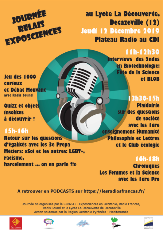 Retour sur la Journée Relais Exposcience du 12/12/2019 au Lycée La Découverte de Decazeville où nous avons été accueillis par l’équipe éducative du CDI ainsi que par Stéphanie Mas, enseignante en Biotechnologie.