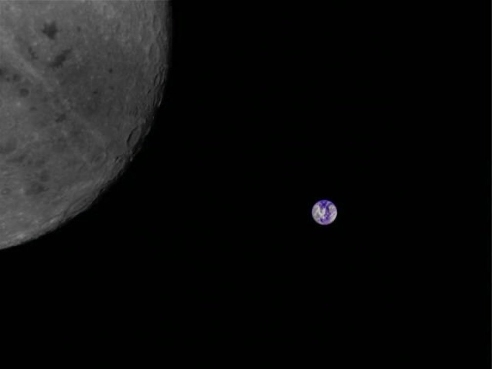 La face cachée de la Lune et la Terre depuis un satellite chinois