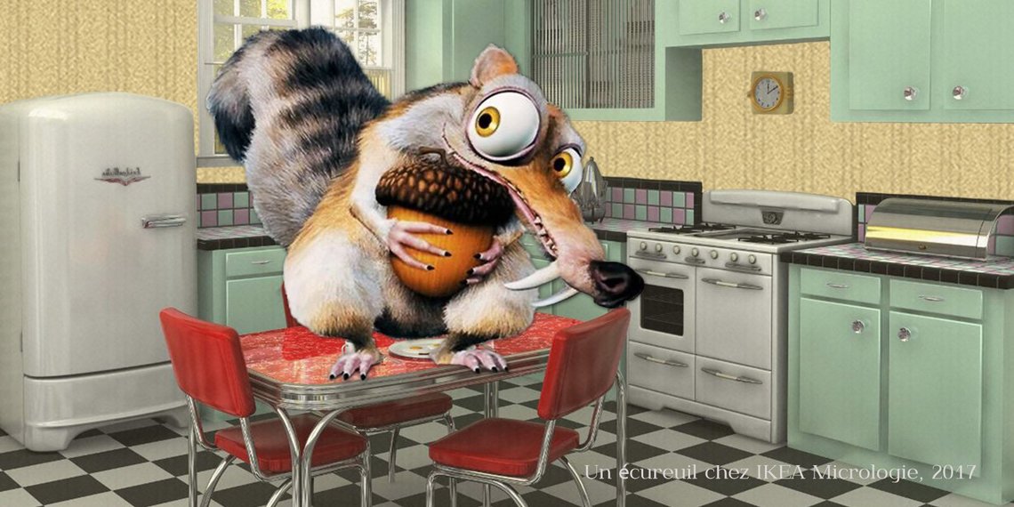 Un écureuil chez IKEA, bricolage micrologie, inspiré de Scrat, l’écureuil dans l’Âge de Glace, film d’animation de Chris Wedge, 2002