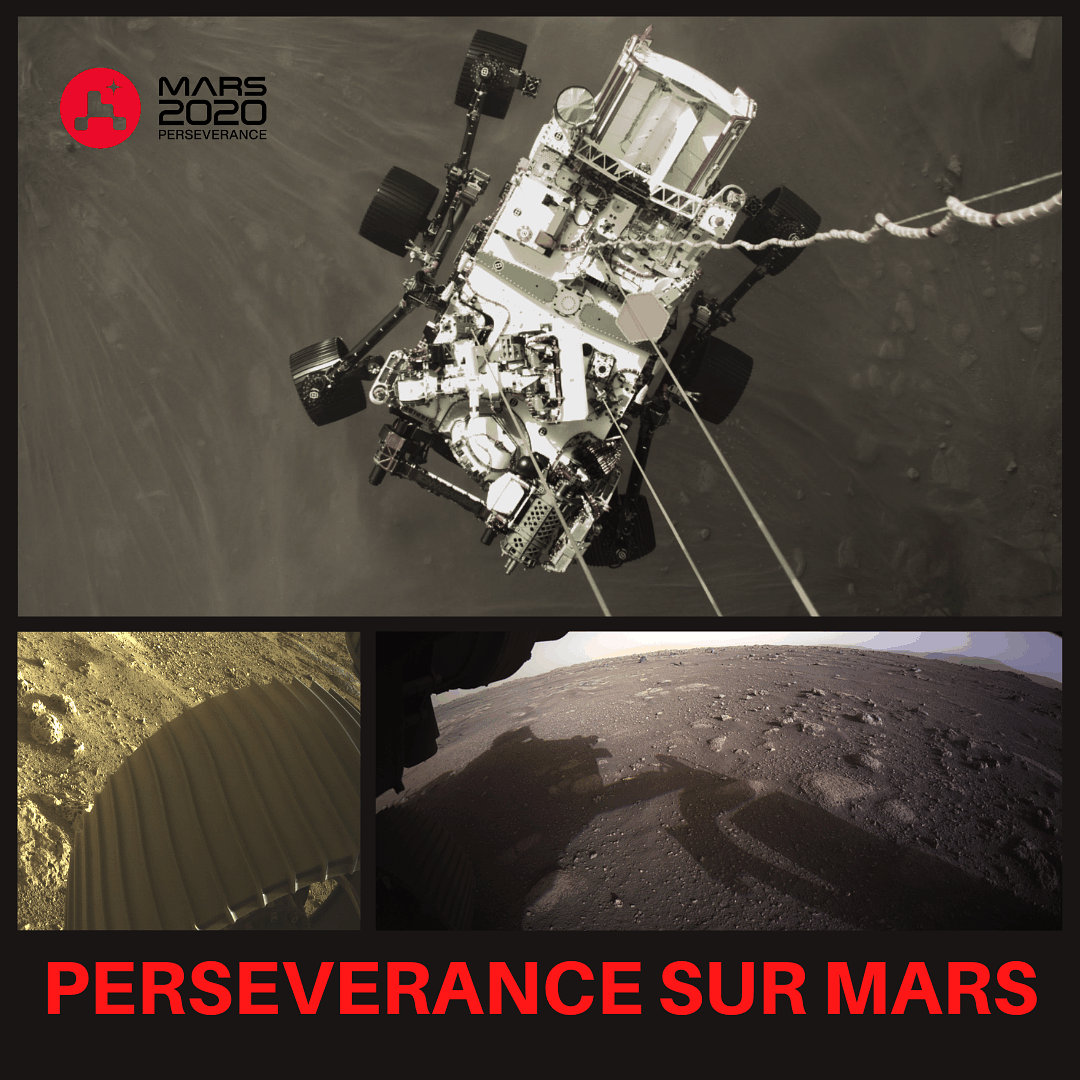 Et le 18 février, la mission Mars 2020 de la NASA réussit directement la prouesse technologique de faire atterrir soin gros rover Perseverance de près de 1 tonne sur Mars.