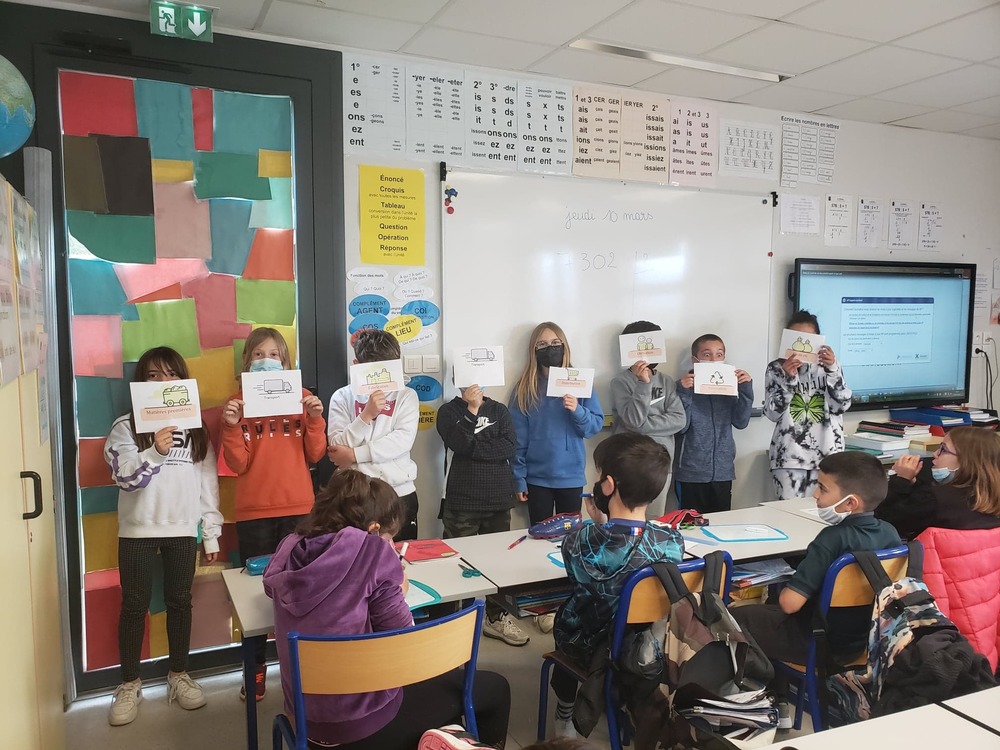 Lors des deuxièmes ateliers, l’objectif était de donner un maximum d’idées aux élèves pour participer au concours Watty sur la thématique « Du clic au déclic, moins d’écran pour l’environnement ». Nous avons pu aborder avec les élèves de CE2/CM1 le cycle de vie des objets, et découvrir la thématique de la pollution numérique avec les CM2.