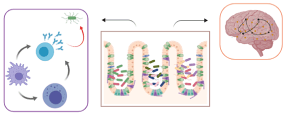 L’ensemble de microorganismes qu’on a dans notre intestin joue un rôle très important dans le développement et la régulation du cerveau et de la réponse immunitaire aux agents externes (Voir Figure 1). Comprendre la relation entre ces systèmes est essentiel pour avoir conscience de l’importance des petits organismes qu’on accueille gentiment dans notre intérieur.