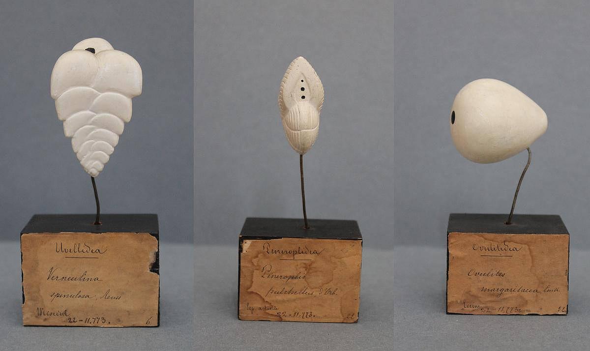 Quelques représentations agrandies de foraminifère. Collection de paléontologie de l’Université de Toulouse.