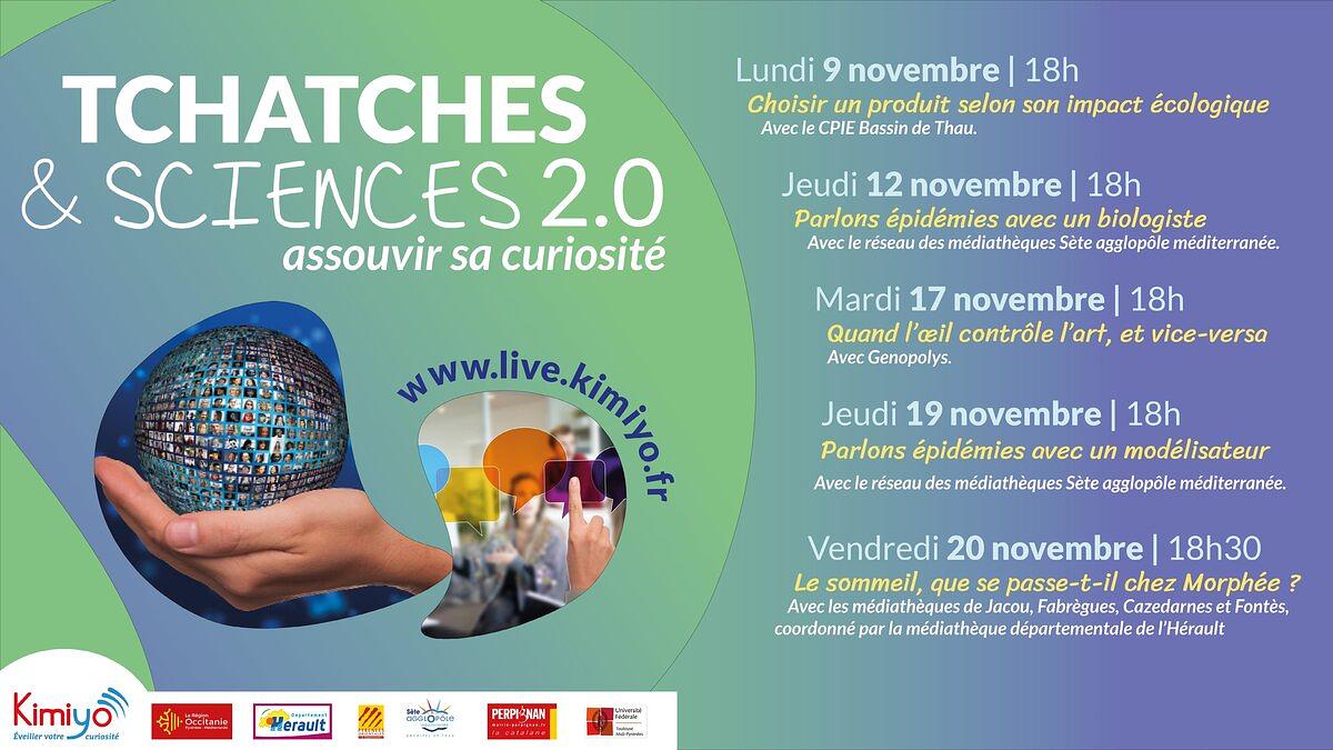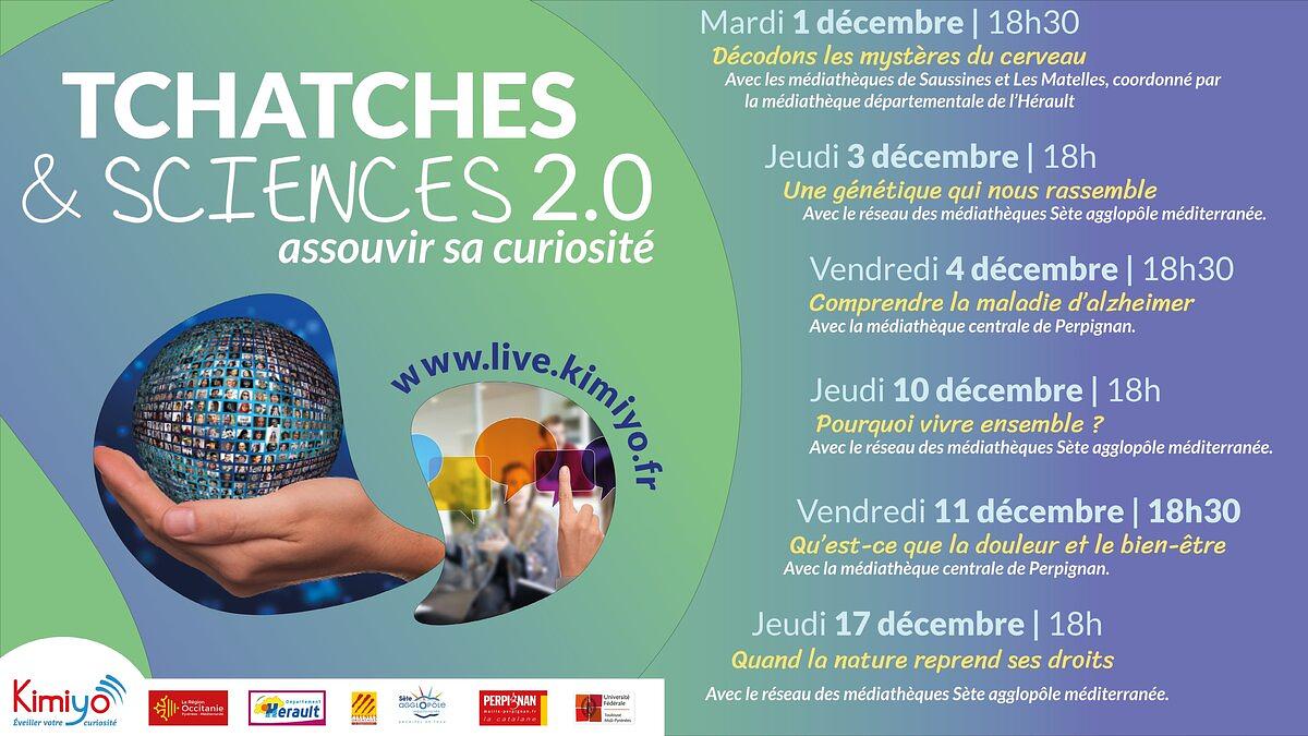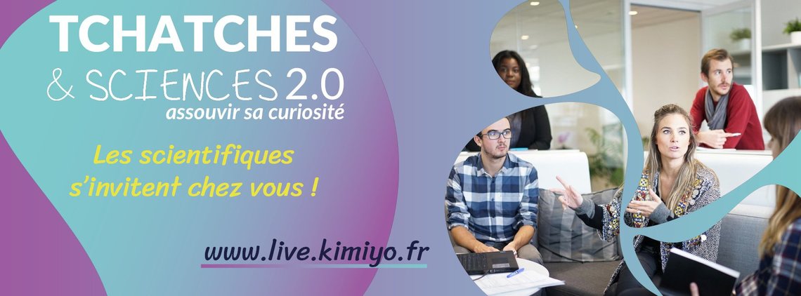 Cette année, Kimiyo reste à vos côtés pour apporter la curiosité dans votre quotidien. En ces temps chamboulés, nous continuerons de vous accompagner dans des questionnements et démarches scientifiques, et quand vous ne pourrez pas venir rencontrer les scientifiques dans divers lieux culturels, ce sont eux qui viendront à vous, directement dans vos salons. Tantôt en présentiel, tantôt en numérique, les tchatches et sciences poursuivent leur route en 2021. En plus de la programmation portée en partenariat avec tous nos partenaires habituels, nous vous donnons rendez-vous tous les 3è mardi de chaque moi pour une Tchatche 2.0 en présence d'un membre de notre comité scientifique.