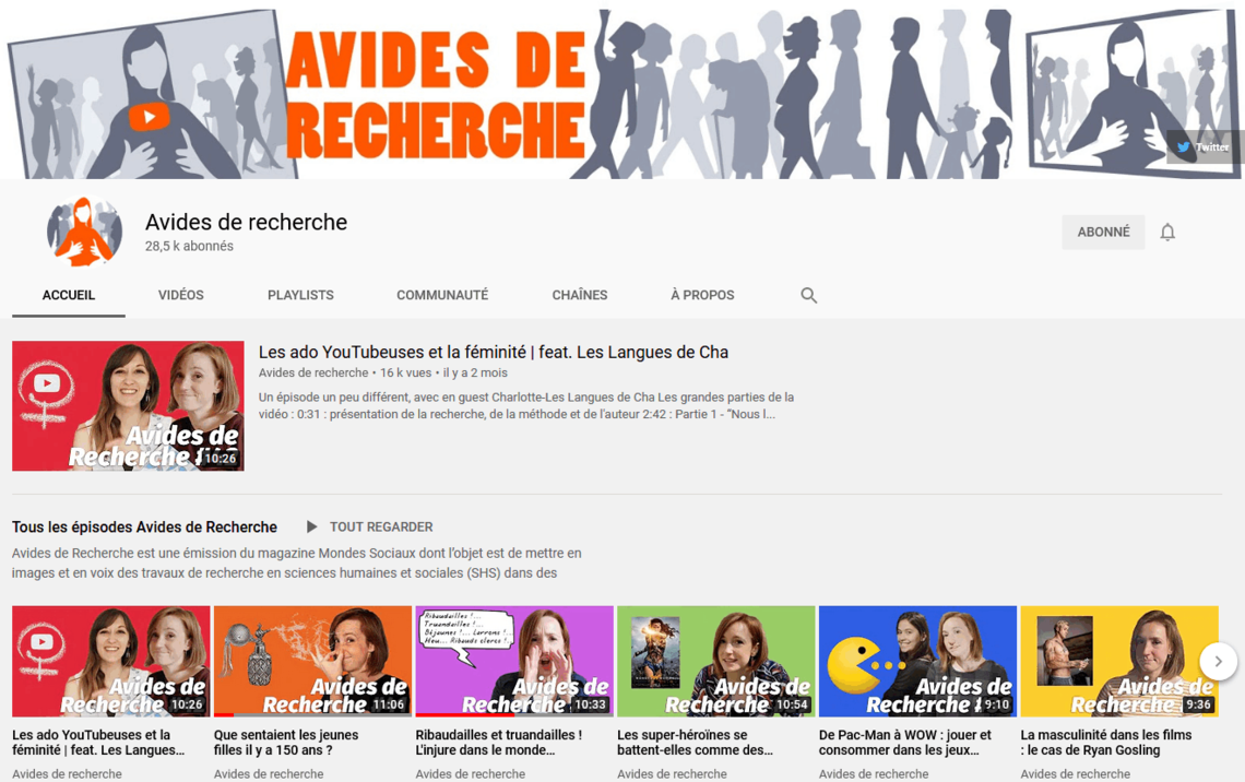 Visuel de couverture : capture d'écran de la chaîne YouTube "Avides de recherche"