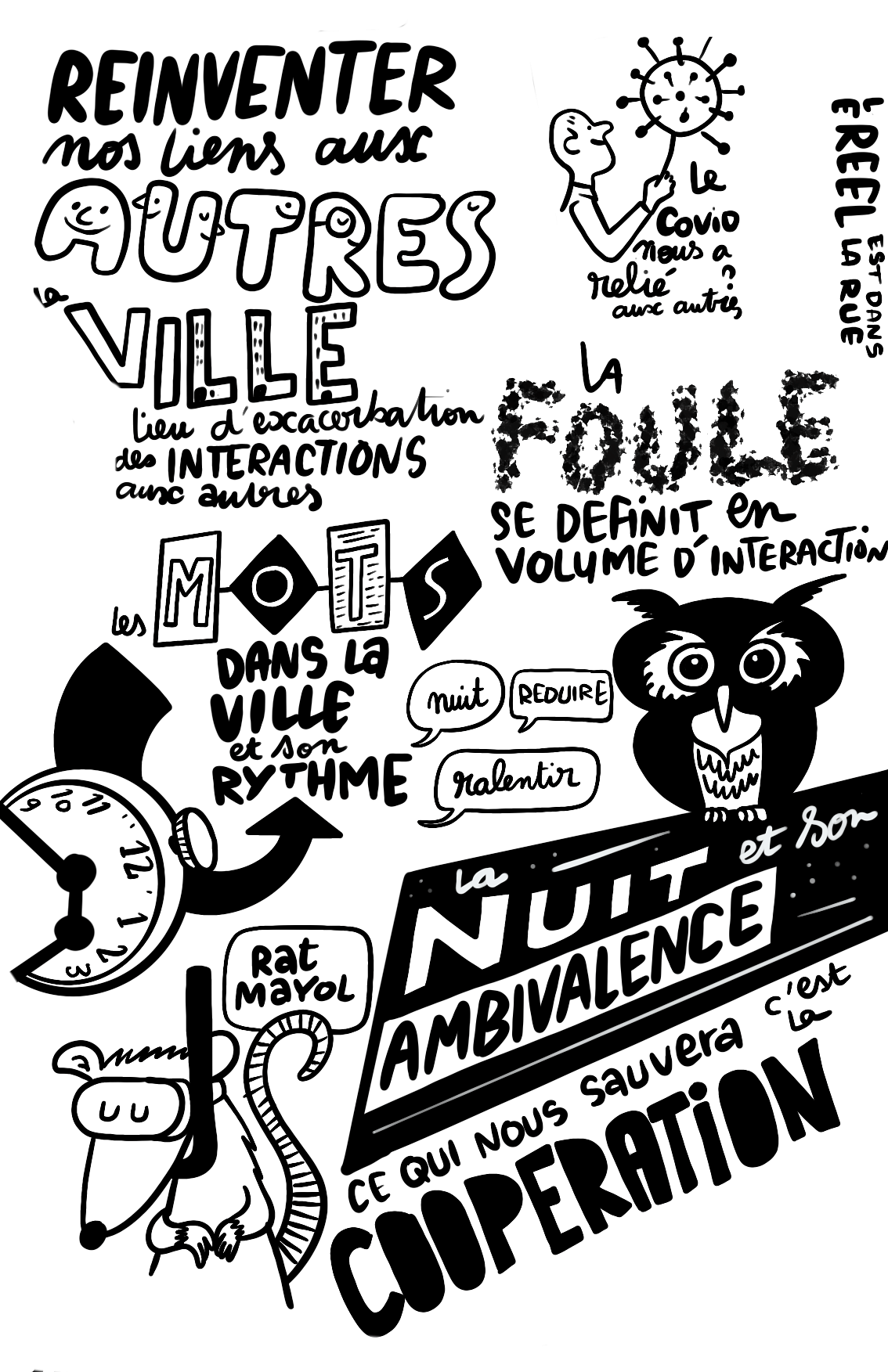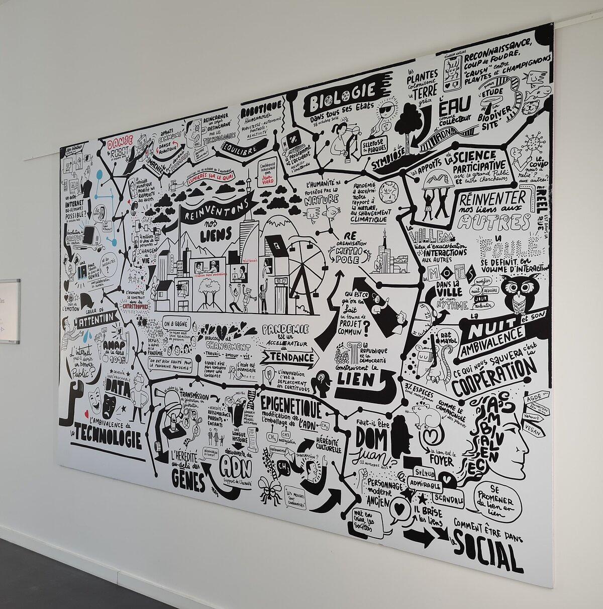 Le scribing, méthode de facilitation graphique consistant à retranscrire sous la forme d'un visuel des propos ou un message en temps réel, a ainsi permis de traduire visuellement et en direct l'essence de ces rencontres, et d'en garder une trace graphique en mettant en lumière et en images les aspects principaux évoqués.
