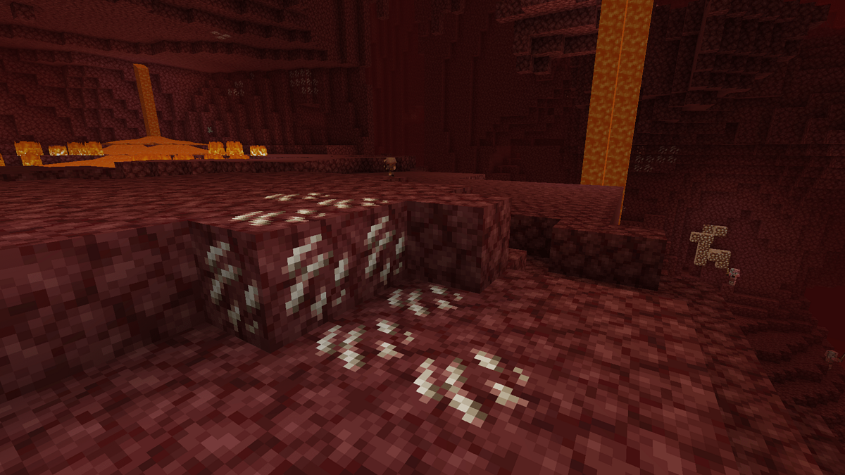 Amas de quartz du Nether dans sa roche-hôte, la Netherrack, dans Minecraft. © Xbox Game Studios, Mojang Studios.