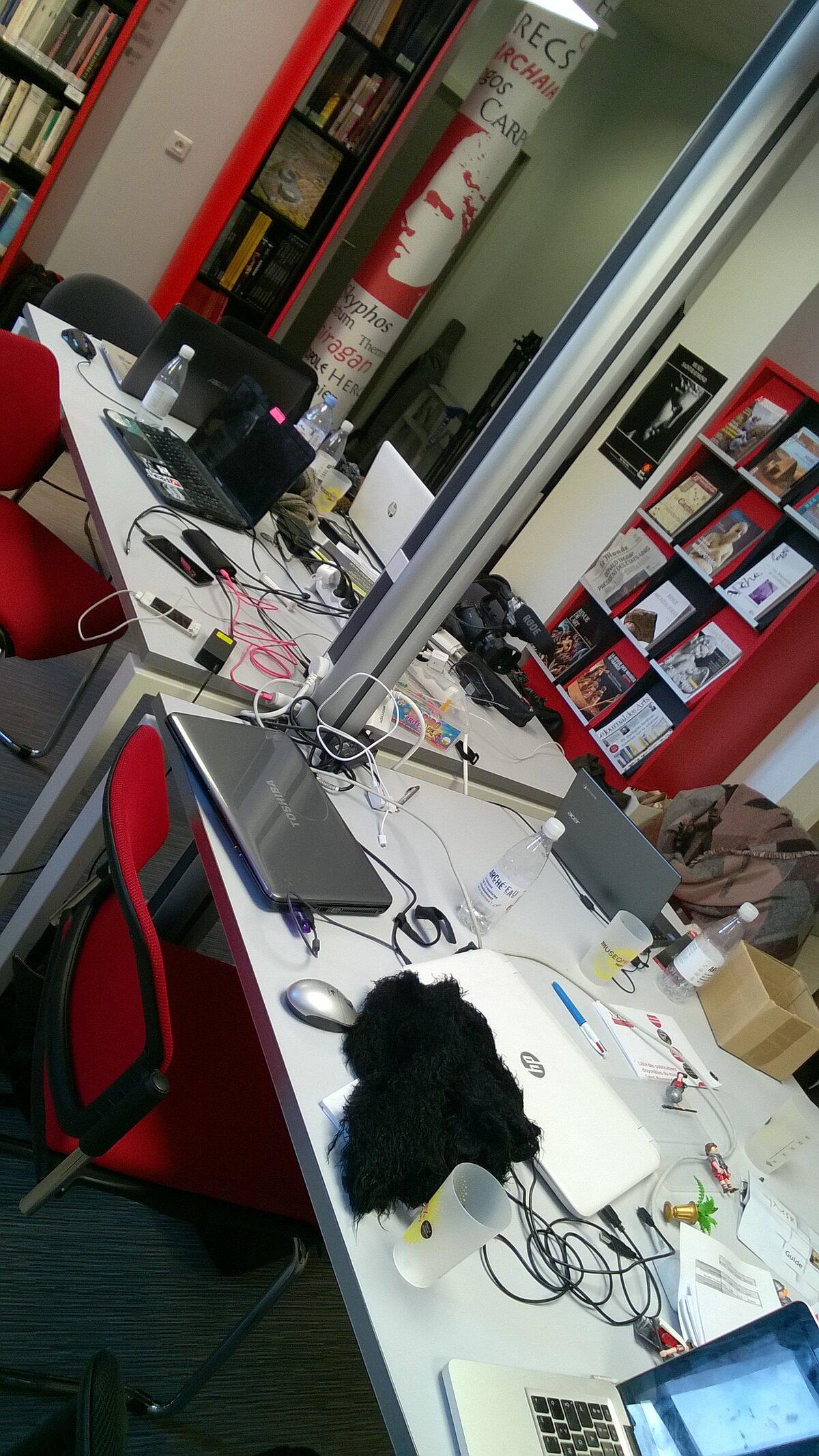 Nous nous installons à la Mixroom et préparons nos ordinateurs qui vont nous servir durant 3 jours .(heureusement qu'ils ont tenu le choc, on ne sait pas ce que l'on serait devenus sans eux !)