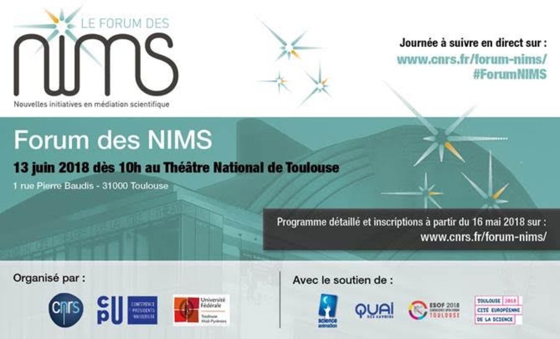 Aujourd'hui sur émotscience je vous parle #ForumNims (Forum des Nouvelles Initiatives en Médiation Scientifique) avec le #NIMS2018 qui aura lieu à #Toulouse au TNT. On s'y retrouve ?