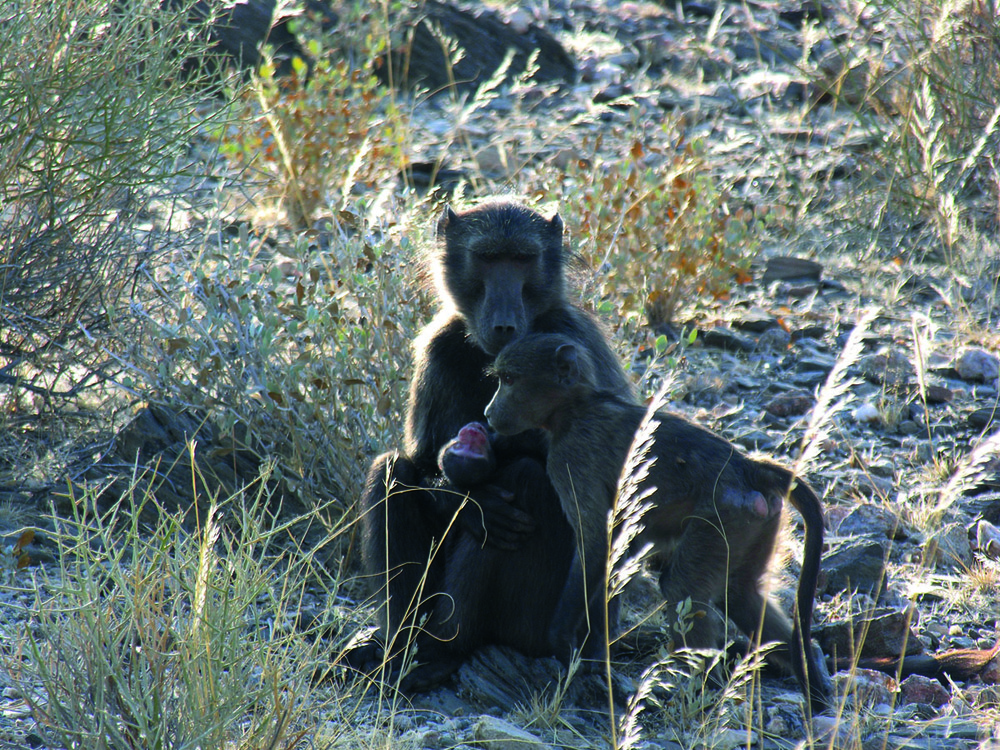 L’expression « porter le deuil » aurait pu être inventée pour elles. Dans le parc naturel Tsaobis, aux portes du désert du Namib, des femelles babouins chacma ont été observées portant, pendant plusieurs jours, le petit cadavre de leur bébé mort. « Ce portage est très difficile pour elles, explique Elise Huchard, primatologue à l’Institut des sciences de l’évolution de Montpellier (Isem*). Un bébé vivant va s’accrocher tout seul au ventre ou au dos de sa mère, là elles vont devoir le porter soit dans leur bouche, soit le soutenir en permanence avec un bras, ce qui rend leurs déplacements très compliqués. »