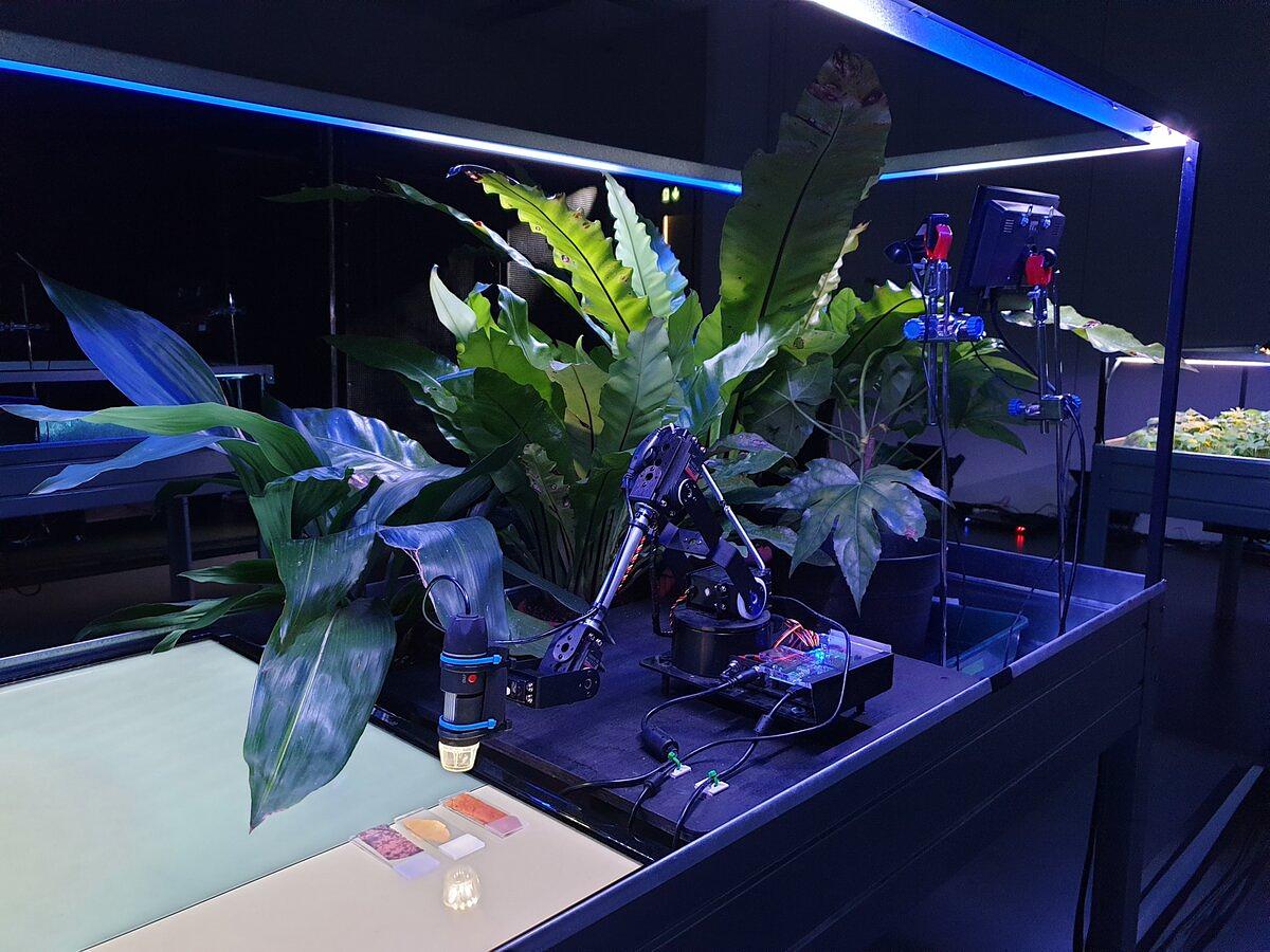 C’est le cas de Frédéric Garcia, chercheur à l’INRA. Désireux de croiser la démarche scientifique et l’approche artistique, il s’est adressé à Edwige Armand, artiste plasticienne, pour une collaboration sur la capacité d’écoute des plantes. Collaboration qui a finalement débouché sur la création de l’installation arts-sciences intitulée « Qui parle Donc ? ». Présentée en deux parties, avec une salle dédiée à l’approche scientifique et une autre à l’approche artistique, l’installation invite le public à porter un autre regard sur le monde végétal qui nous entouré, et donne à imaginer la manière dont le végétal perçoit son environnement, c'est-à-dire sa capacité d’écoute.