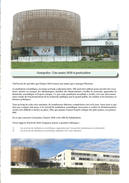 Voici le rapport d'activité de Genopolys pour 2020, des activités revues et corrigées...
