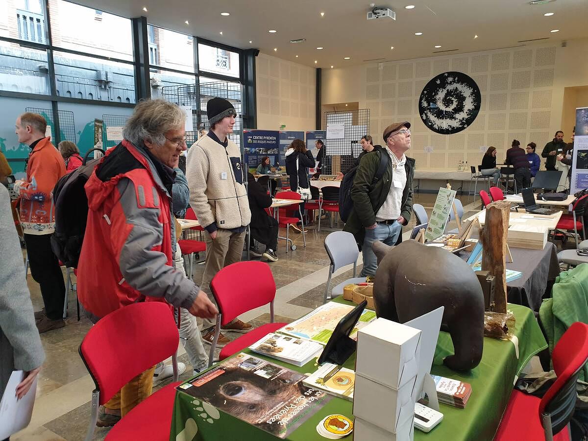 L’association Pays de l’Ours est venue présenter sa journée randonnée en montagne encadrée par un accompagnateur membre du Réseau Ours Brun. Les randonneurs participent à la recherche des indices de présence d’ours : traces, poils, photos, vidéos… Ils apprennent à identifier les indices de présence de la faune sauvage et ils font eux-mêmes les relevés scientifiques des traces d’ours. Ces relevés seront transmis au réseau de suivi officiel pour analyse. Les randonneurs relèvent également les pièges photo ainsi que vidéo et visionnent les images sur place, en avant-première ! Ils découvrent ainsi tous les secrets de l’ours des Pyrénées et l’exceptionnelle richesse de la biodiversité du massif.