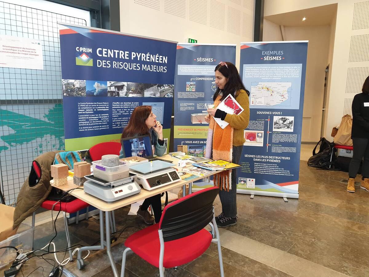 Le C-PRIM a exposé sa principale mission qui consiste en la gestion scientifique et l'animation de la Maison de la connaissance du risque sismique basée à Lourdes. Ce centre a pour objectif d’informer les publics sur les tremblements de terre. Plusieurs maquettes interactives illustrant les effets des séismes sur les bâtiments sont à disposition des visiteurs. Ce lieu offre la possibilité d’observer des sismomètres et leurs enregistrements en direct, mais aussi de ressentir un séisme sur un simulateur accompagné de lunettes de réalité virtuelle. À l’extérieur, une exposition grandeur nature illustre les principes de construction parasismique. Une salle vidéo diffuse de courtes vidéos sur le thème des séismes. Des activités spécifiques sont également proposées aux enfants : jeu de construction, lecture, animation en ligne, dessins animés.