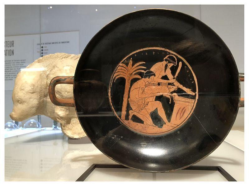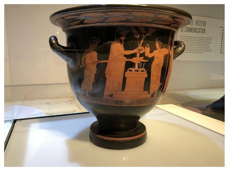 • Cratère grec5 : Le cratère était un grand vase servant à mélanger le vin et l'eau (Source : Exposition « Rituels Grecs, une expérience sensible »)