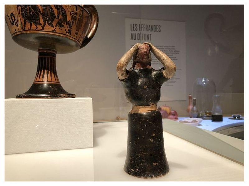 Drôle de rite ;-)  Pendant la procession qui mène le défunt à sa tombe, j’apprends que les familles pouvaient faire appel aux services de pleureuses professionnelles. En gros, imaginez des femmes suivre le cortège funèbre en hurlant de pleurs, en s’arrachant les cheveux, en se lacérant le visage ou encore en se couvrant de cendres. Vous trouverez ça peut-être fou et pourtant ce n’est pas une blague, car les pleureuses devaient pouvoir montrer à tous l’affliction du cortège en agissant de la sorte !