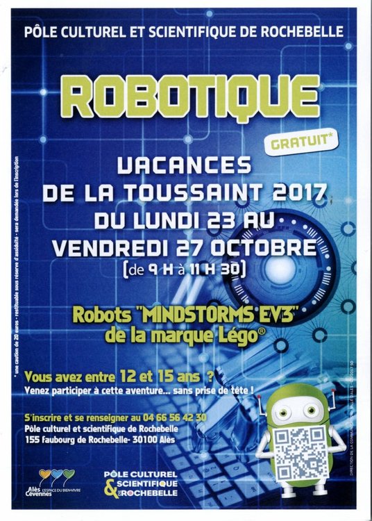 Stage de robotique gratuit pendant les vacances scolaire du lundi 23 au vendredi 27 octobre 2017 de 9h à 11h30.