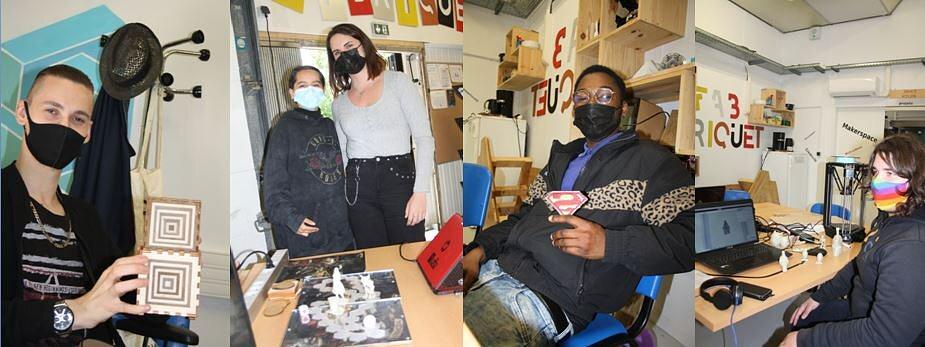 Leur premier point commun ? Ils n’avaient jamais franchi la porte d’un fablab avant de se lancer dans ce programme et ont débarqué au fablab sans savoir quel univers les attendait. Le tout sans diplôme. Et nous avons eu la joie d’accueillir pour son 2ème passage Yanis ( voir "Se Fabriquer" épisode 1 ), motivé comme jamais pour fabriquer un cube infini et de plus en plus à l’aise avec les machines et pour présenter ses projets !