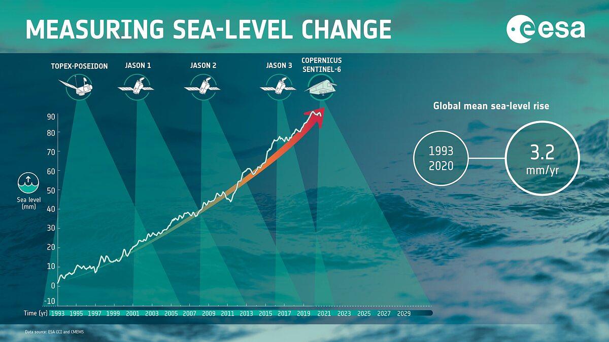 En effet, depuis le début des années 1990, les altimètres satellitaires ont révolutionné notre compréhension de l’évolution du niveau de la mer. Avec des millions de personnes vivant dans des communautés côtières à travers le monde, la montée des mers est en tête de liste des préoccupations majeures liées au changement climatique. La surveillance de la hauteur de la surface de la mer est essentielle pour comprendre les changements en cours afin que les décideurs aient les preuves nécessaires pour mettre en œuvre des politiques appropriées pour aider à réduire le changement climatique et pour que les autorités prennent des mesures pour protéger les communautés vulnérables.