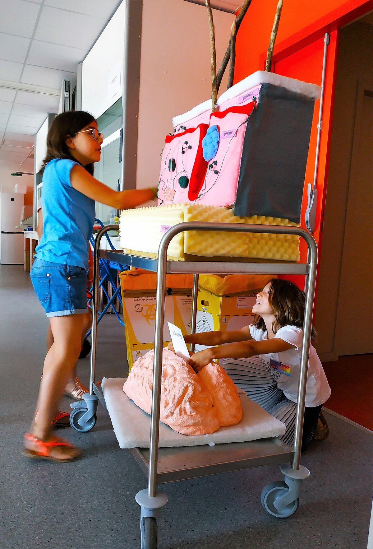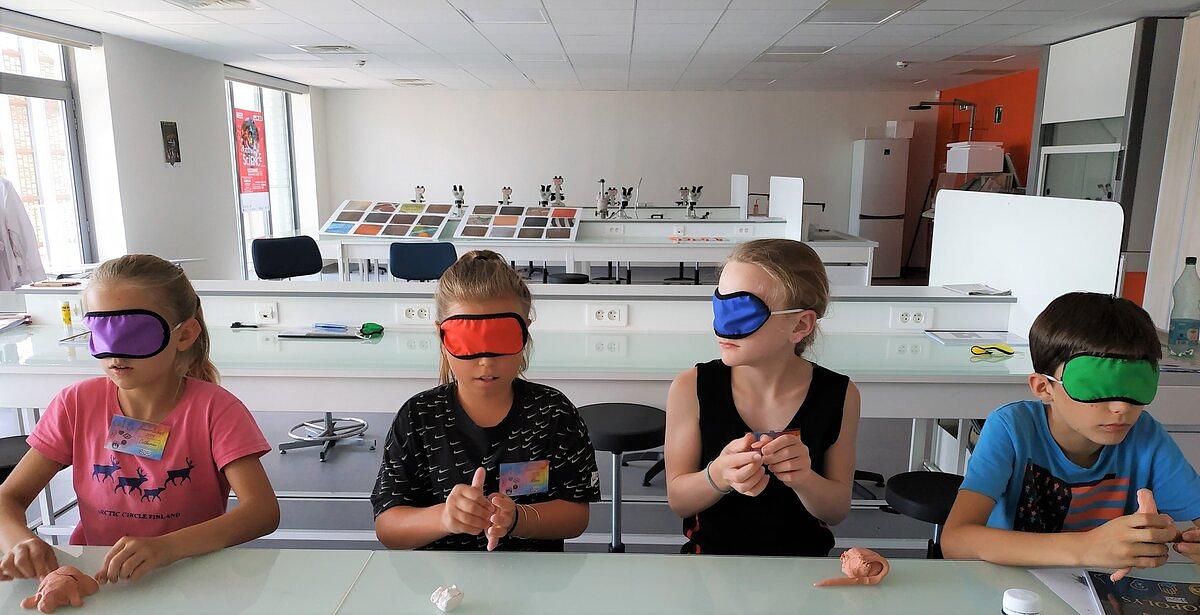 Le premier jour était celui du toucher. Au programme, l’étude de la peau avec une maquette géante pour apprendre les différentes couches qui la composent, l’observation au microscope d’une coupe et à la loupe binoculaire de leur propre peau. Ils ont ensuite participé à de nombreux ateliers pour comprendre les notions de proprioception, l’existence des différents récepteurs de notre peau (chaleur, pression), mais aussi les zones du corps où ils sont le plus présents (homunculus).