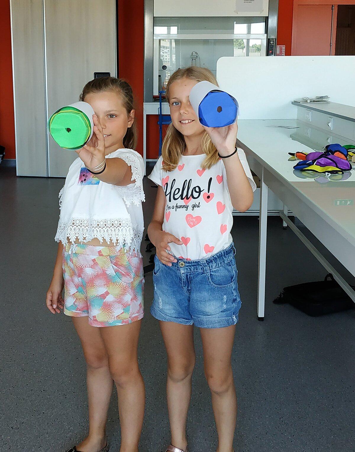 Lors du troisième jour, les enfants n’ont pas eu froid aux yeux ! Vous l’aurez compris, on a parlé de la vision. Après une introduction sur la lumière, les enfants ont appris le fonctionnement de l’œil à l’aide d’une maquette et la construction d’une chambre noire. Ils ont participé à des ateliers sur les illusions d’optique, abordé les notions de daltonisme, de myopie, d’hypermétropie, ainsi que la manière dont les animaux perçoivent leur environnement et les couleurs.