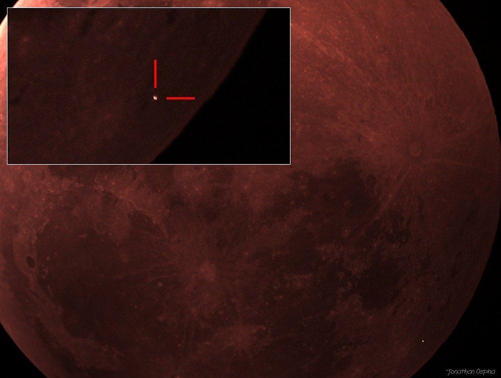 Un bref éclair sur l’hémisphère occidental de la Lune, près de l’équateur, a été observé par plusieurs astronomes, de part le monde.