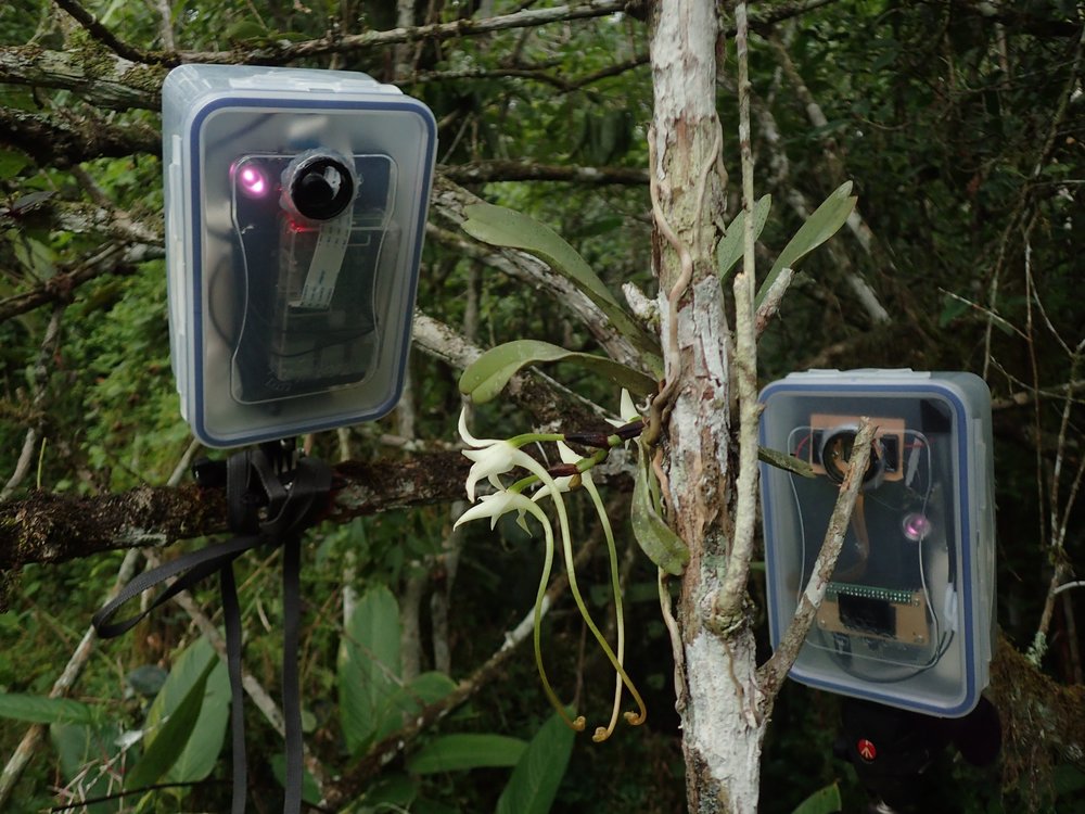 Les chercheurs ont testé PICT au Cameroun sur deux espèces végétales à l’écologie contrastée : l’ébène d’Afrique, Diospyros crassiflora, et l’orchidée épiphyte Cyrtorchis letouzeyi. L’ébène d’Afrique peut atteindre 25m de haut et ses fleurs sont difficiles d’accès pour les humains. Quant à l’orchidée étudiée, les évènements de pollinisation sont rares. PICT a été placé en face de fleurs avant leur éclosion et a enregistré plusieurs jours de suite. « On a pu observer pour la première fois en Afrique centrale la pollinisation d’un Cyrtorchis par un Sphingidae dont la trompe mesurait plus de 15 cm, s’enthousiasme Vincent Droissart. C’est le même genre d’interaction orchidée-pollinisateur que Darwin avait prévu et qui a participé à sa théorie de l’évolution ». D’autres surprises étaient au rendez-vous : « On a observé un rongeur au régime alimentaire mal connu consommer une fleur d’ébène », raconte Vincent Deblauwe, co-auteur de ce travail et chercheur à UCLA et IITA. Cette innovation qui a fait ses preuves sur le terrain est très prometteuse et ouvre donc de nouvelles perspectives de recherche en écologie et biologie de la reproduction des plantes et de leurs interactions avec des animaux difficiles à observer.