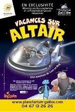 Le Planetarium Galilée à Montpellier (34) propose du 4 au 19 février 2017 toute une série de spectacles, à voir en famille (enfants à partir de 4 ans). Ces spectacles comprennent deux parties, une projection de film suivie d'une explication des phénomènes observés pendant le film par un animateur. Au programme de ces vacances d'hiver, "vacances sur ALTAIR" un film qui vous permettra de comprendre que les étoiles et les planètes sont des astres extrêmement différents, même si, on a l'impression que rien ne les distingue quand on les observe à l'oeil nu. Vous pourrez partir à la conquête de l'espace avec "dream to fly : le rêve d'Icare" et vous assisterez à des orages magnétiques du soleil avec "climats extrêmes du système solaire".