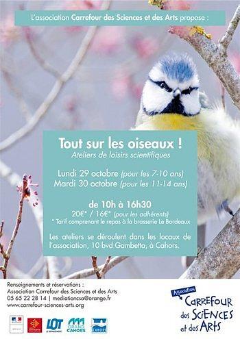 RDV le lundi 29 octobre de 10h à 16h30 (pour les 7-10 ans) et le mardi 30 octobre de 10h à 16h30 (pour les 11-14 ans) au local de l'association Carrefour des Sciences et des Arts, 10 boulevard Gambetta à Cahors.