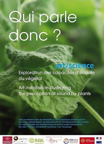 « Qui parle donc ? » est une installation interactive et sonore qui rend compte de la rencontre entre artistes et scientifiques autour de recherches sur la capacité des plantes à percevoir des ondes créées par leur environnement sonore. Une partie « Labo » est consacrée aux expérimentations, une autre « L’installation » mêle démarche scientifique et approche artistique autour de la question des capacités d’écoute du végétal.